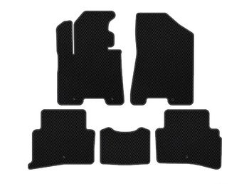 EVA (ЕВА) – це скорочена назва полімерного матеріалу – етилен вінілацетат. Дані листи ЕВА використовуються для виготовлення килимків у салоні автомобіля. Листи мають унікальну особливість - вся поверхня його складається з безлічі осередків у вигляді ромба або сот. При загальній товщині матеріалу, яка становить 10 мм, глибина осередків становить 7 мм. Поверхня матеріалу дозволяє розподіляти та утримувати велику кількість рідини, бруду, льоду в порожнинах цих осередків, що зводить до мінімуму їх поширення по салону автомобіля. Авто килимкам з EVA матеріалу не потрібні борти - поява калюж на їх поверхні виключена, а салон автомобіля та взуття залишаються чистими та сухими. Слід також додати, що матеріал EVA має грязь і водовідштовхувальні властивості, тому очистити авто килимок з ЕВА можна легко і швидко, досить його просто струсити. Матеріал стійкий до кислот, лугів, нафтопродуктів, а також до інших хімічно активних речовин, позбавлений різкого, неприємного запаху.