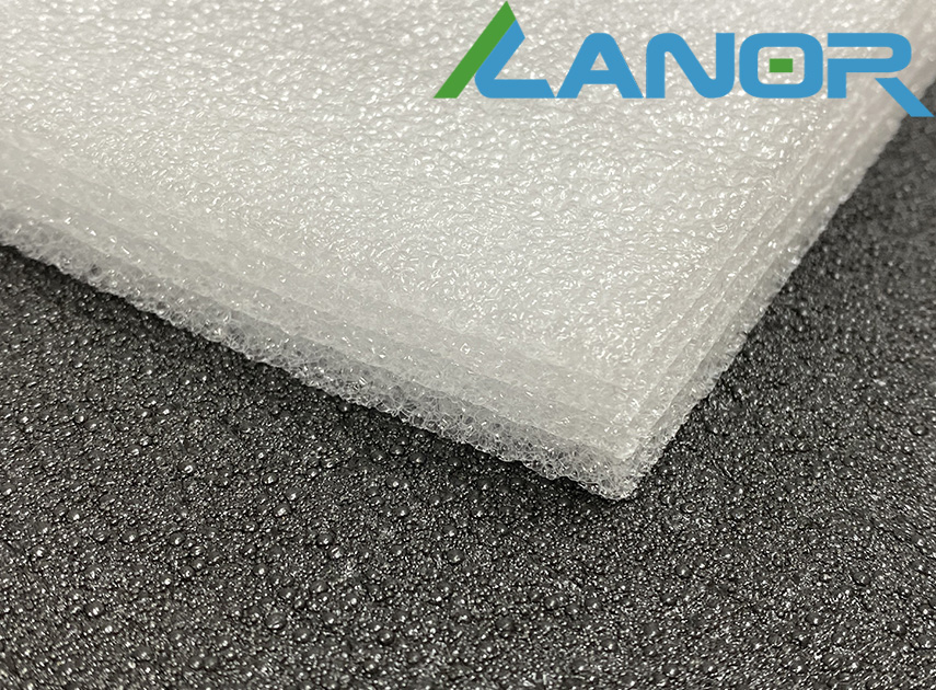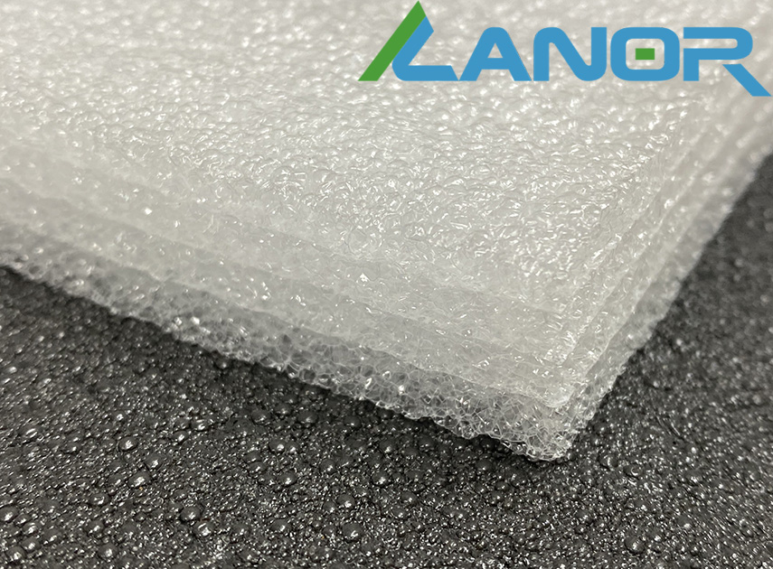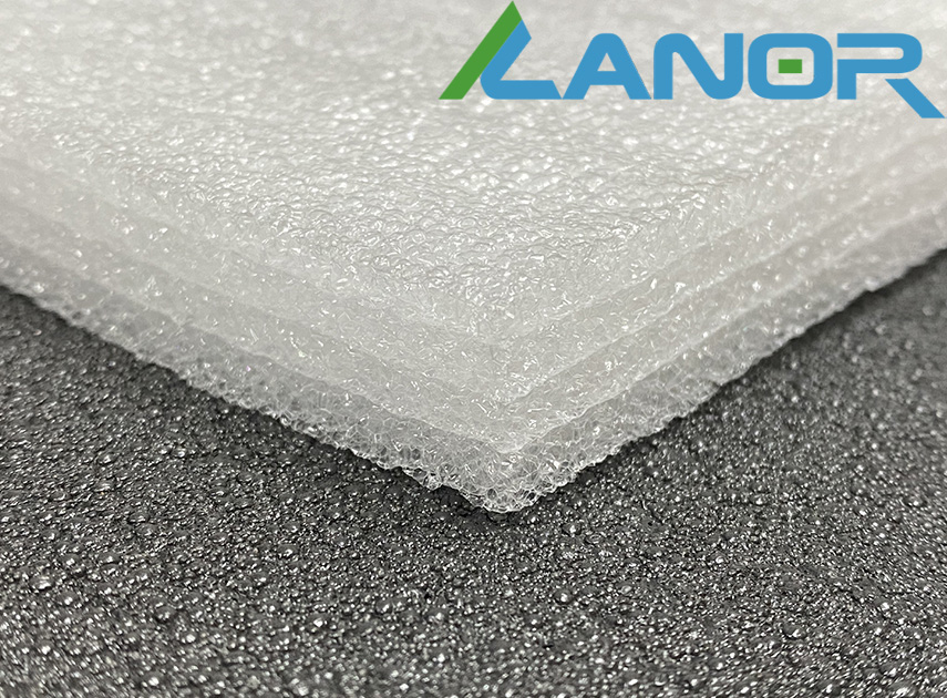 Спінений матеріал, матового білого кольору, у розрізі структурно помітні "запечатані" бульбашки повітря. Поверхня матеріалу рівна, трохи хвиляста. Листовий багатошаровий матеріал. Шари не схильні до розшарування, оскільки термічно припаяні один до одного.