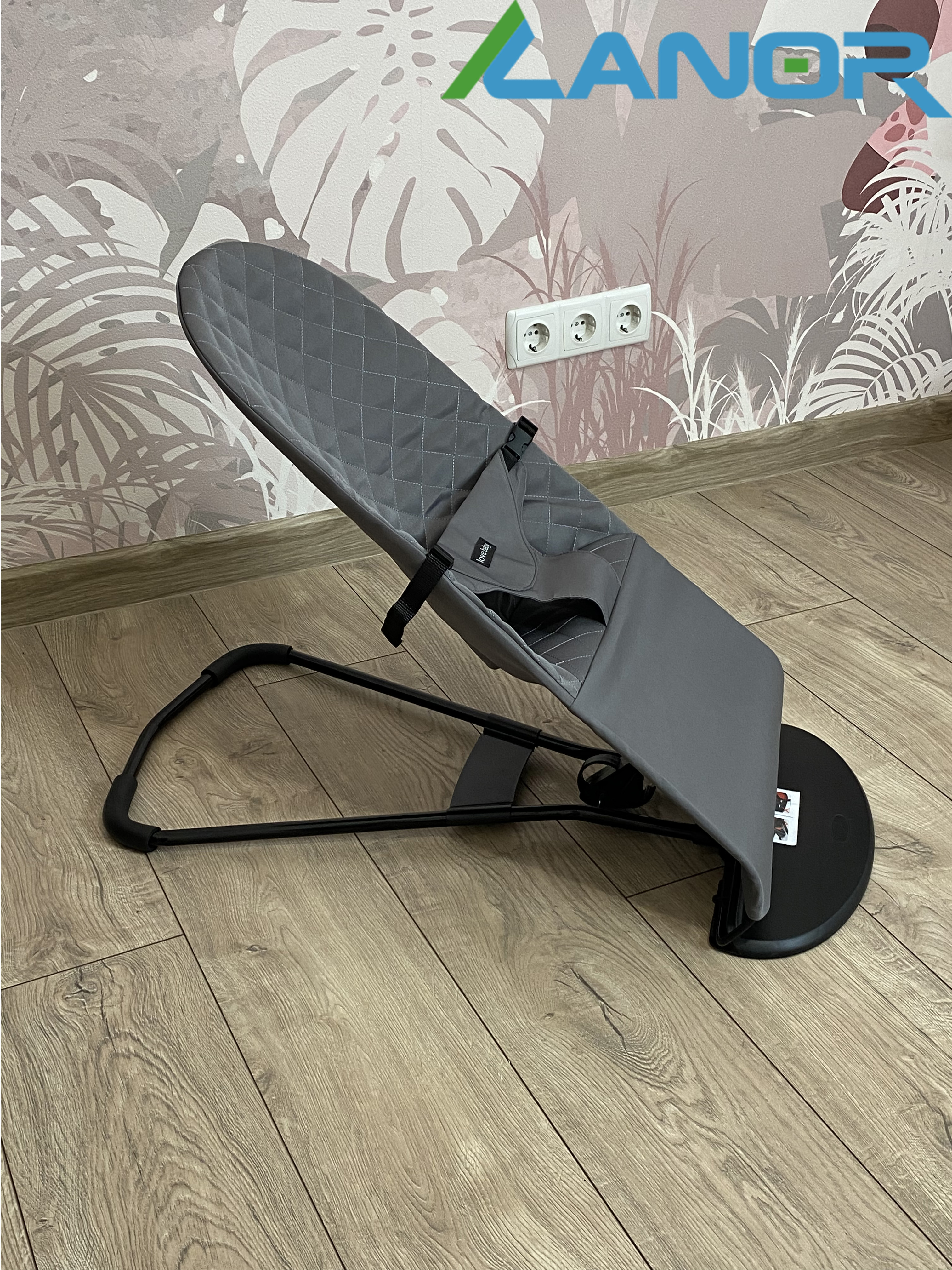- Шезлонг чудово підтримує спину дитини в природному положенні, що дуже важливо в перші місяці життя. А правильно розташовані паси безпеки надійно утримують малюка, тому він не випаде з крісла, навіть у разі сильного погойдування.