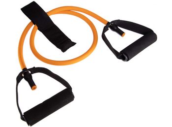 Тренажер є пружним еластичним джгутом, виготовленим з високоякісного латексу, який при розтягуванні створює навантаження для м'язів. Міцні зручні ручки із неопрену забезпечують повний контроль над спортивним снарядом. Для його фіксації служить якір – смуга із міцного поліестеру.