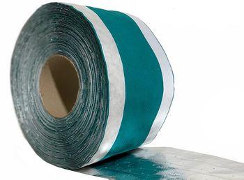 Клейова стрічка на основі поліефірного полотна з односторонньою металізацією має дуже високу адгезію до більшості будівельних матеріалів. З боку металізації – бутилова стрічка; з боку поліефірного полотна-клейова смужка акрилового клею.