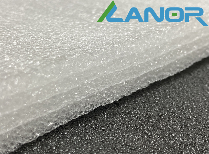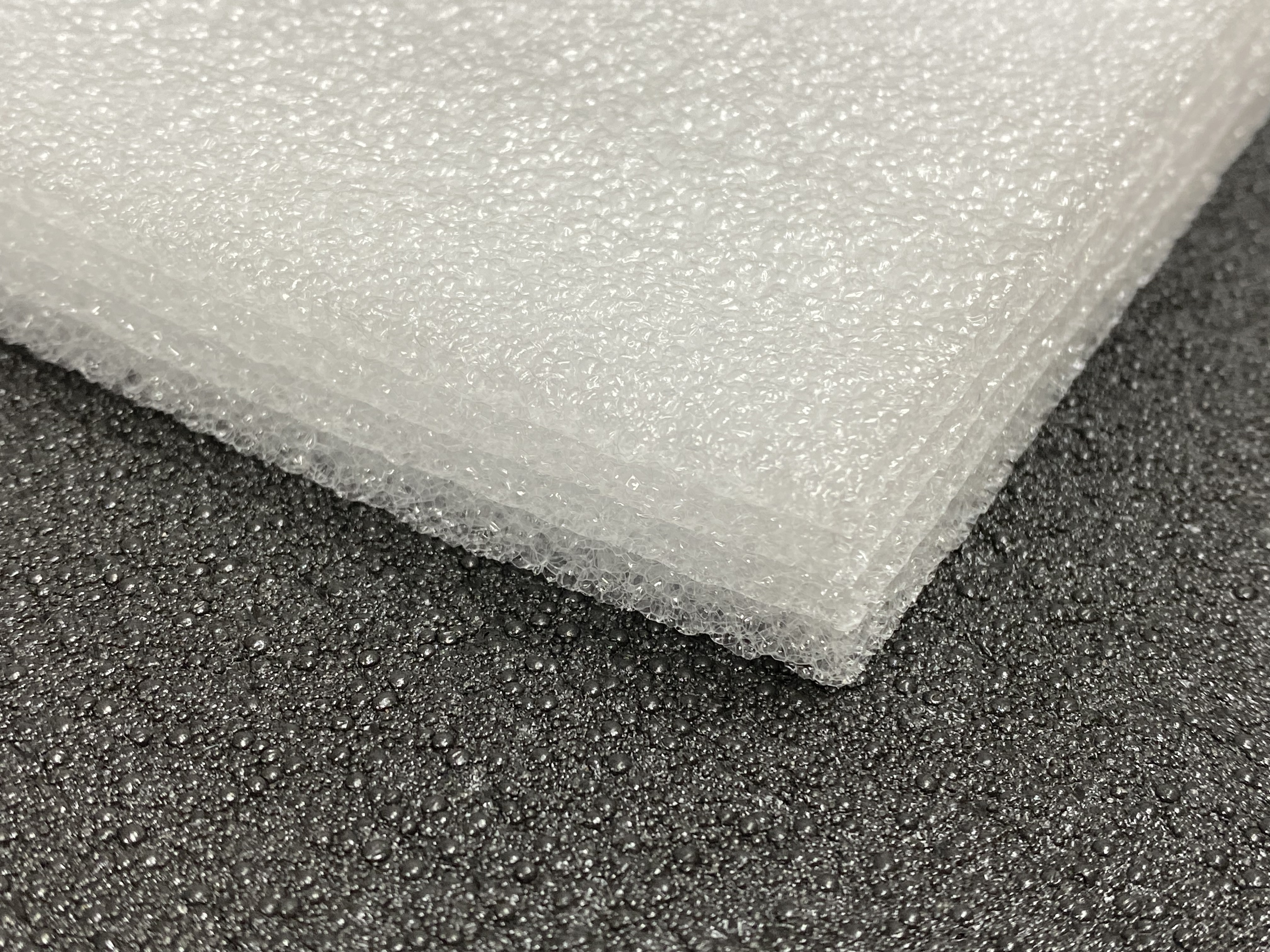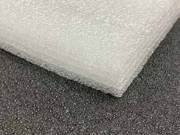 Спінений матеріал, матового білого кольору, у розрізі структурно помітні "запечатані" бульбашки повітря. Поверхня матеріалу рівна, трохи хвиляста. Листовий багатошаровий матеріал. Шари не схильні до розшарування, оскільки термічно припаяні один до одного.