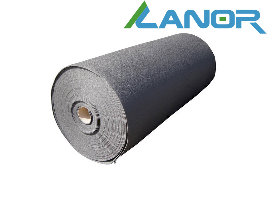 - Підкладку Lanor розгортають і відрізають відповідно до заданих розмірів з таким розрахунком, щоб повністю покрити площу підлоги і при цьому забезпечити заклад матеріалу на стіни або колони вище рівня підлогового покриття, що укладається, за принципом «плаваючої» підлоги. Матеріал при необхідності закріплюють самоклеючою стрічкою або скотчем для запобігання зсуву під час укладання підлогового покриття.